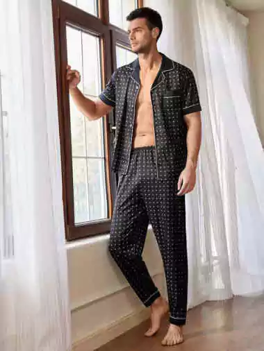 MOLDE PIJAMA MASCULINO CAMISA COM BOTÃO MANGA CURTA E CALÇA